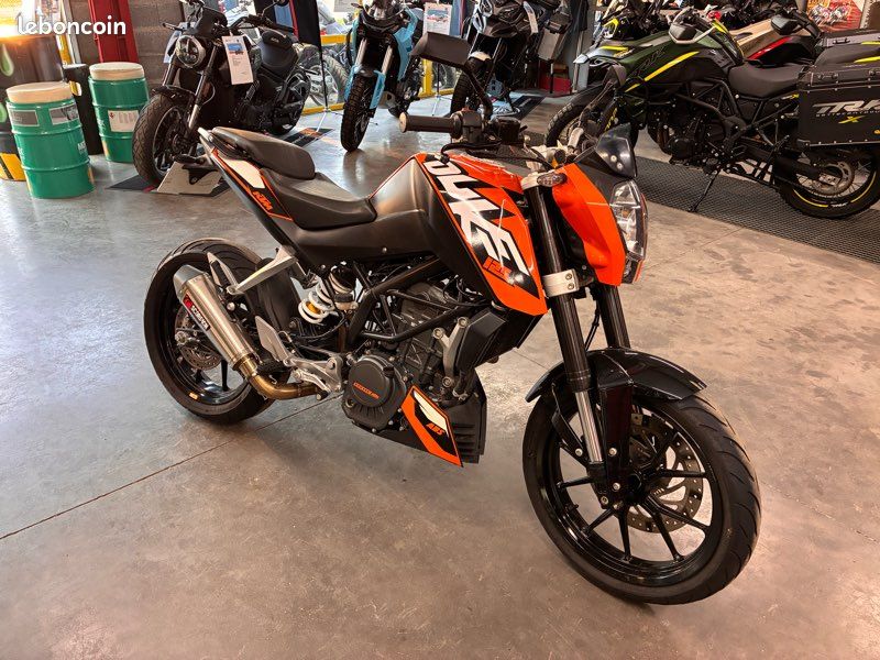 Dujardin motos vous propose cette KTM Duke 125 affichant 11800 kms. 1ère mise en circulation 08/2013 Véhicule entièrement révisé, très bon état ! Kit chaîne de transmission neuf… Prix hors frais d’immatriculation